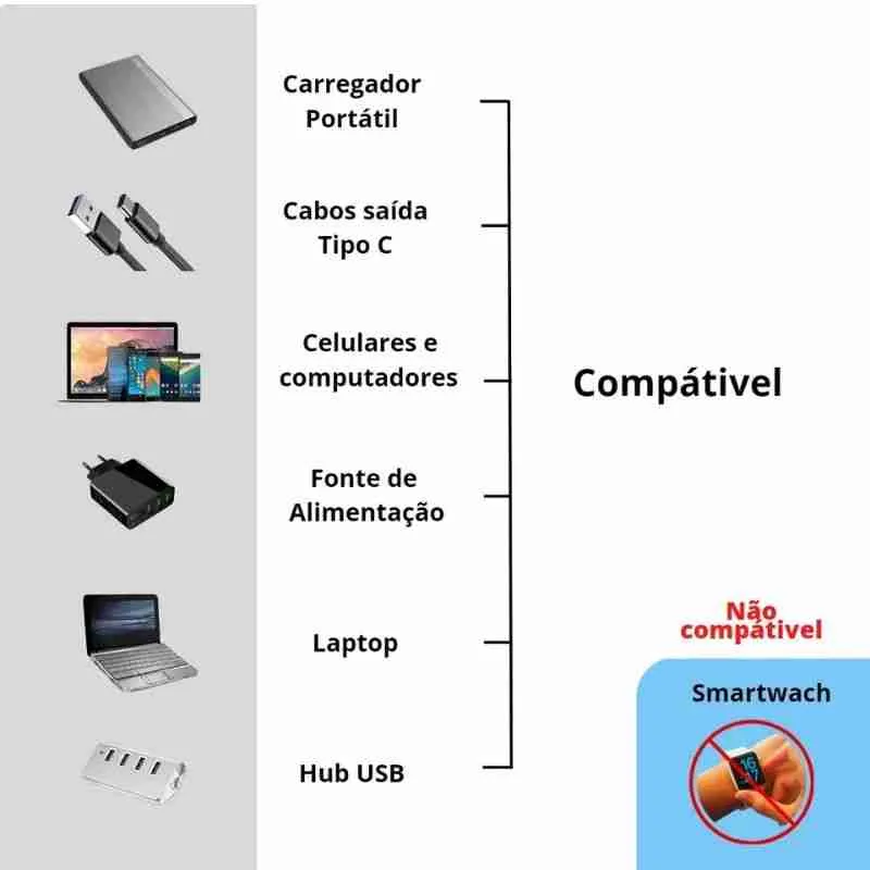 Carregar dispositivos USB-C: Além de facilitar a transferência de dados, o adaptador permite conectar seu smartphone ou tablet com porta USB-C a carregadores de parede ou portas USB de computadores para carregar a bateria.