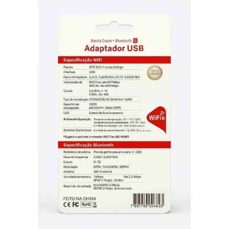 Adaptador Wi-Fi 6 Dual Band 5G + Bluetooth 4.2 USB