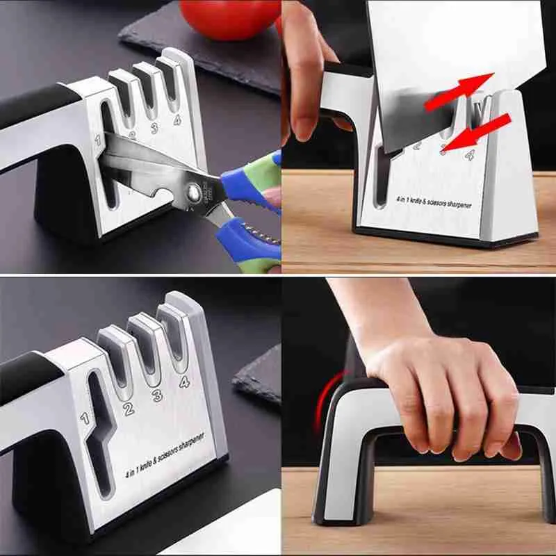 – 5 segundos para afiação eficaz: Não há necessidade de pagar um especialista para afiar sua faca. Simplesmente coloque a lâmina na ranhura e puxe sua faca ou tesoura algumas vezes, apenas alguns segundos, eles estarão prontos.