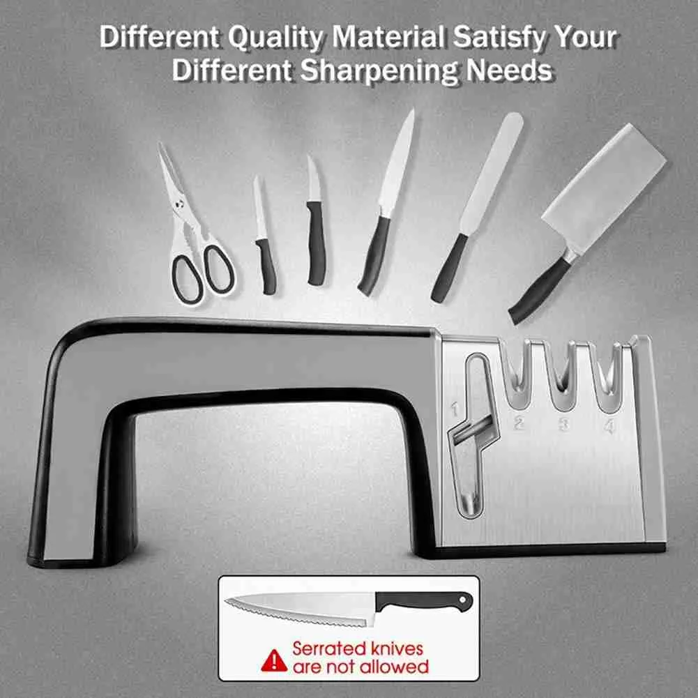 – Qualidade Premium: trabalhada em aço inoxidável, ABS de qualidade e possui 4 fendas feitas de abrasivos de diamante, aço de tungstênio e cerâmica. Este afiador de facas profissional definitivamente vai funcionar muito bem e durar para vida toda.