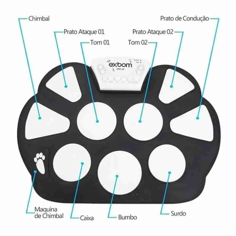 Bateria Eletrônica Musical Drum Dobrável Silicone