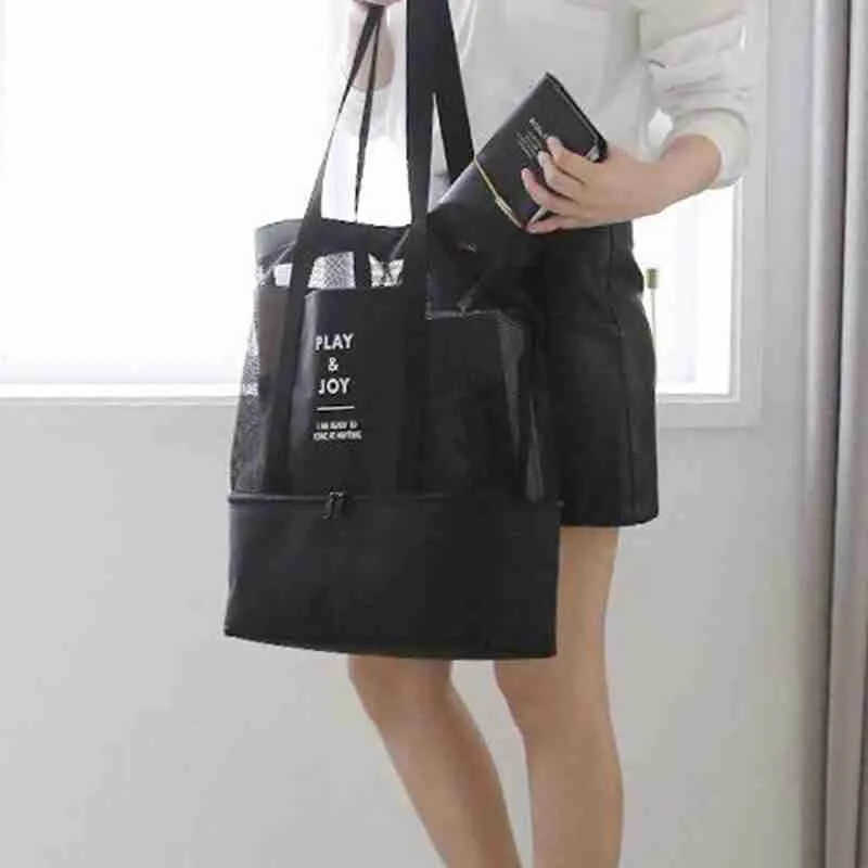 Bolsa praia com compartimento térmico para praia e piquinique.