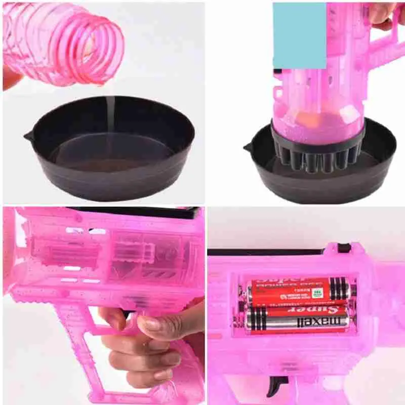 Fácil de Operar e Portátil : Funciona com 3 pilhas AA (não incluídas), sendo fácil de instalar e manusear. Inclui um pequeno prato e garrafa para facilitar o uso com água de bolha.