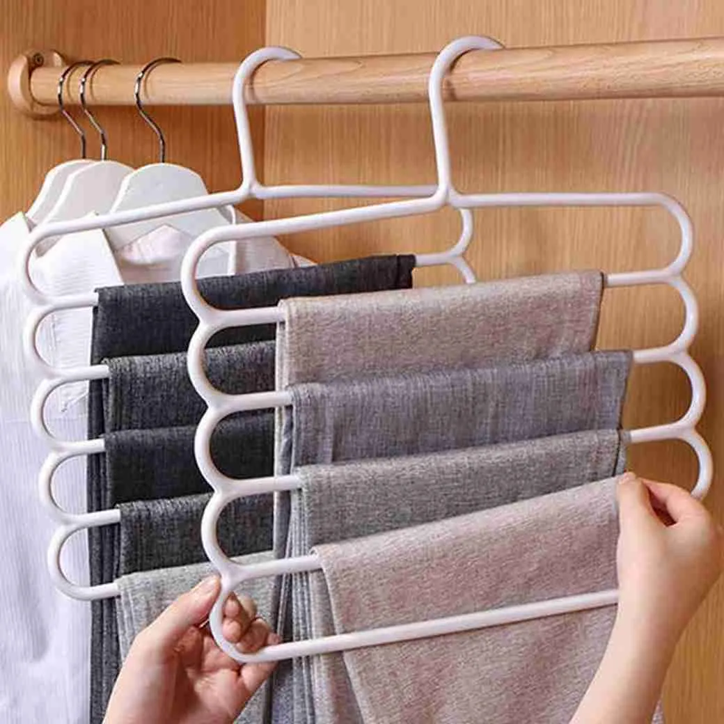 Cabide De Plástico Multifuncional Com 5 Camadas Roupas e Calças
