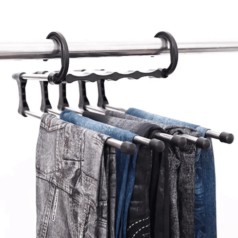 Com esse incrível cabide para calças solucione o problema de espaço no seu guarda-roupas, colocando até cinco peças de roupas no espaço de uma.