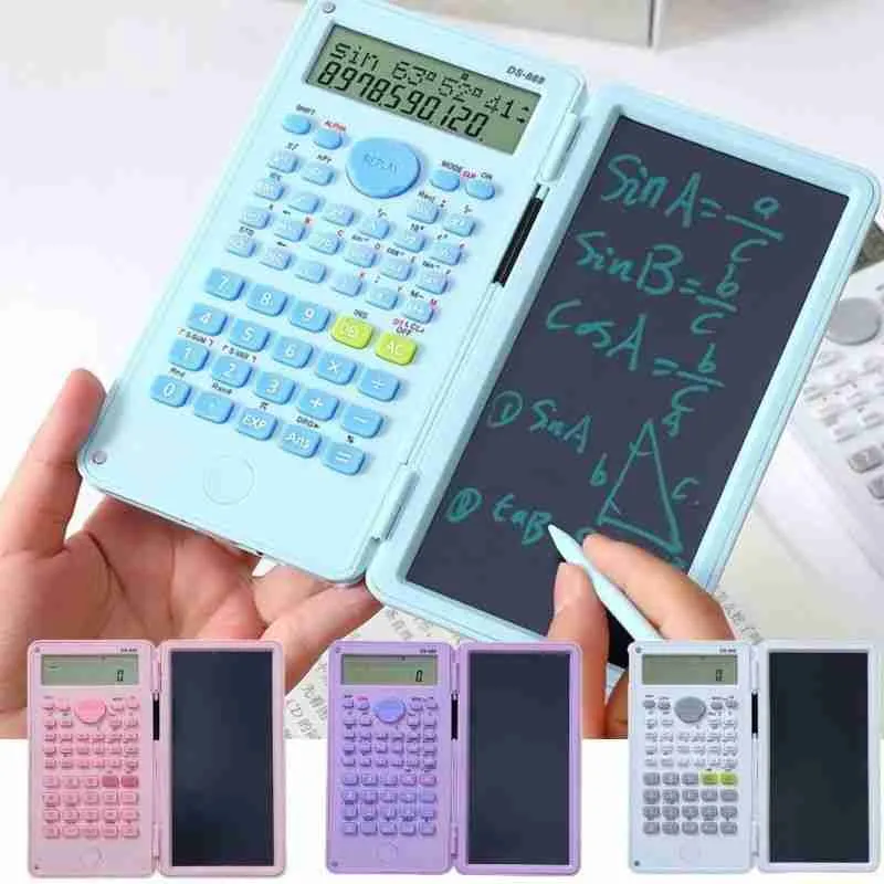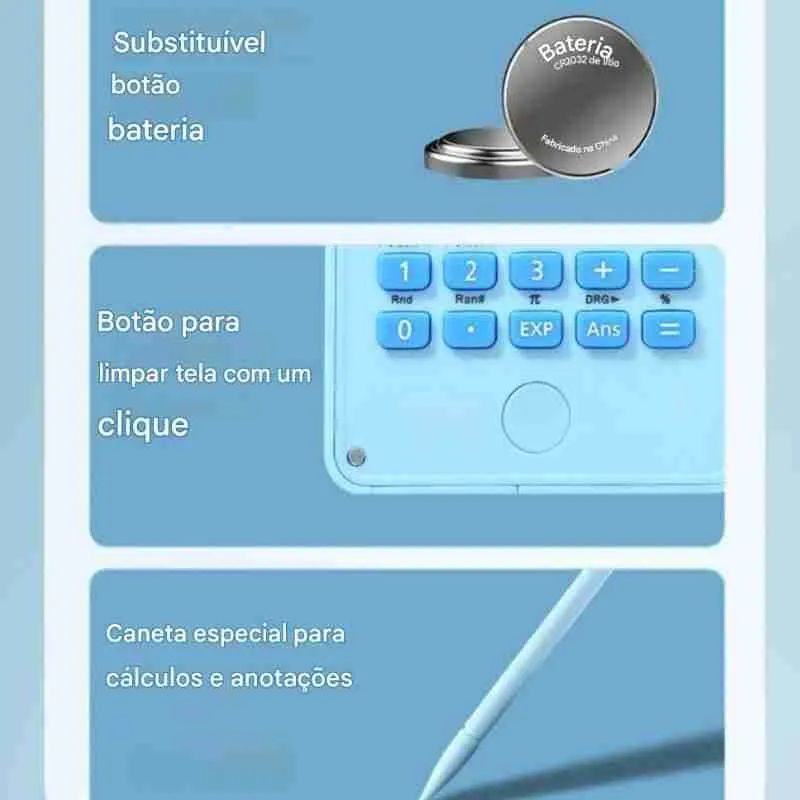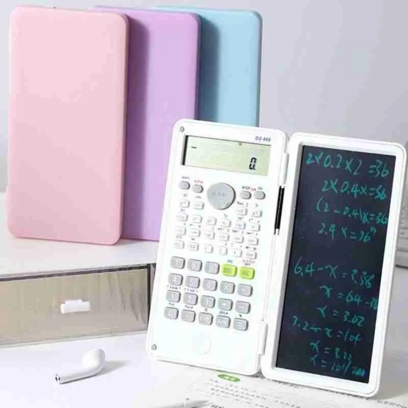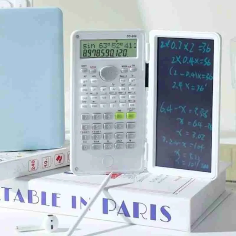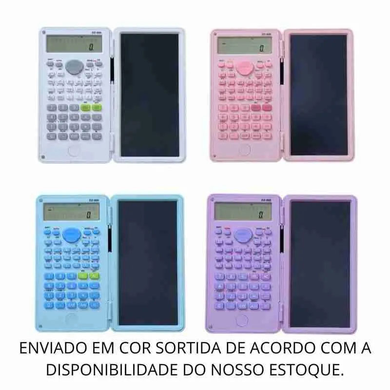 Calculadora científica multifuncional com tela dupla: visor digital tradicional e tela LCD sensível ao toque para anotações. Ideal para estudantes, professores e profissionais que precisam calcular e anotar rapidamente.