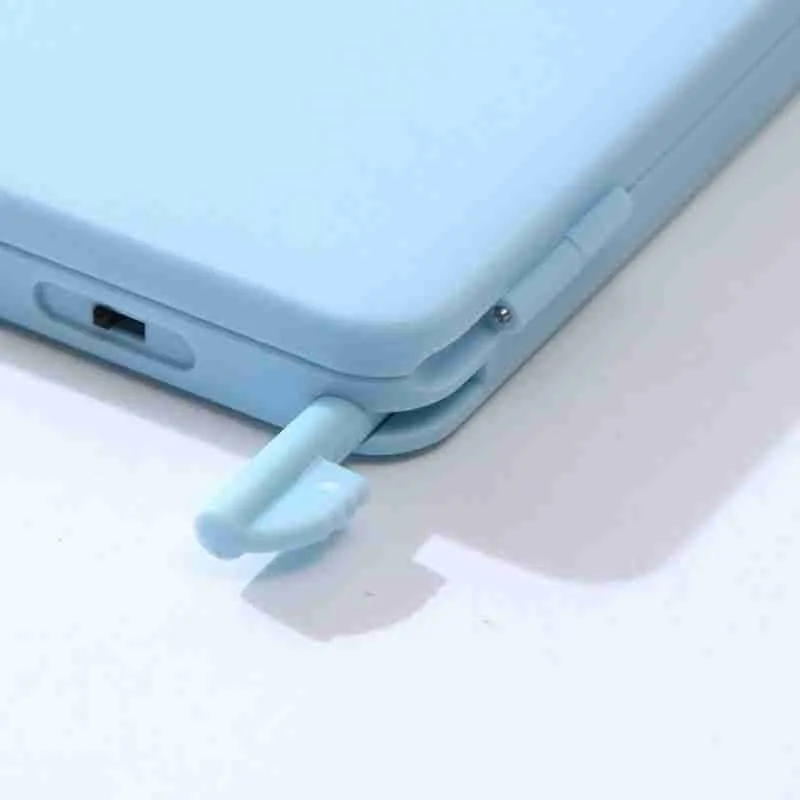 Design moderno e dobrável, disponível em várias cores (azul, rosa, lilás e branco).