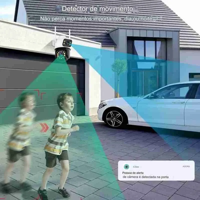 A resolução A Câmera IP Externa Wifi Dupla 2 Em 1 Visao Noturna oferece resolução Full HD para capturar vídeos de alta qualidade.