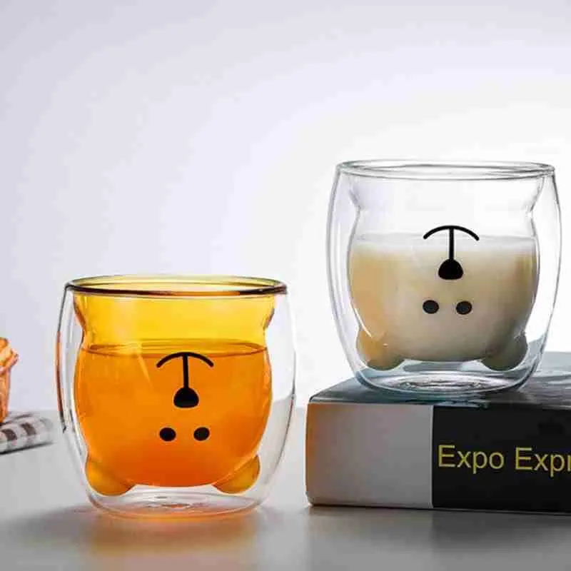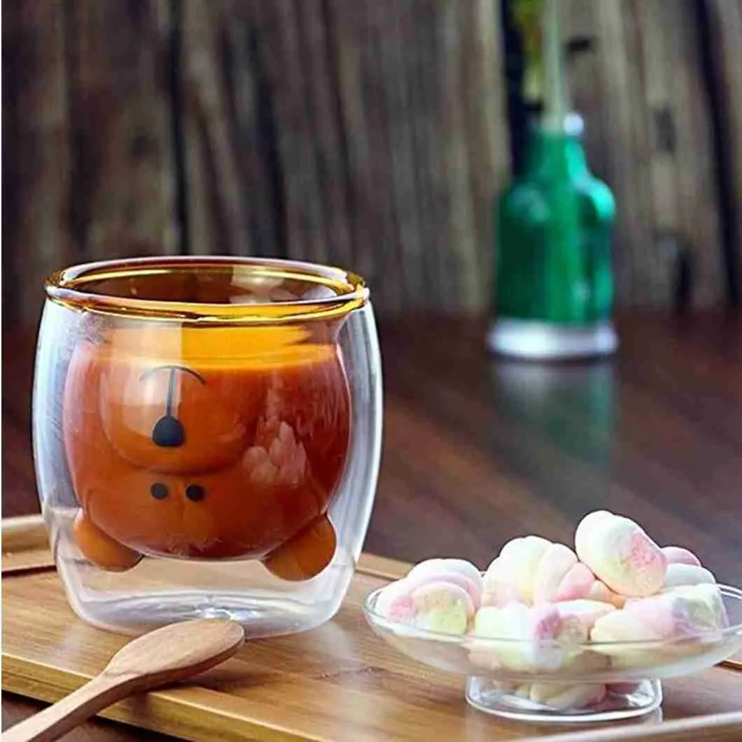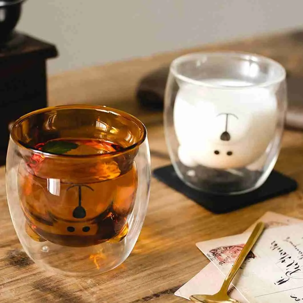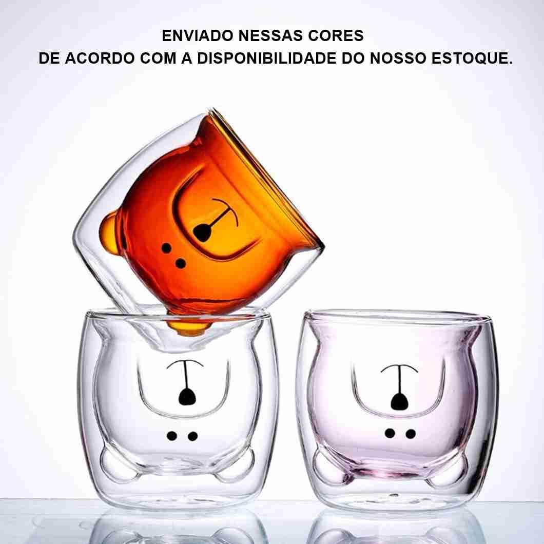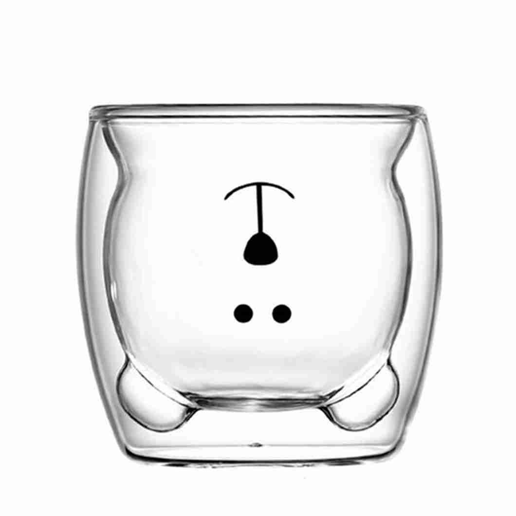 Caneca Bonito Urso Dupla Camada de Vidro Resistente ao Calor – 250ml