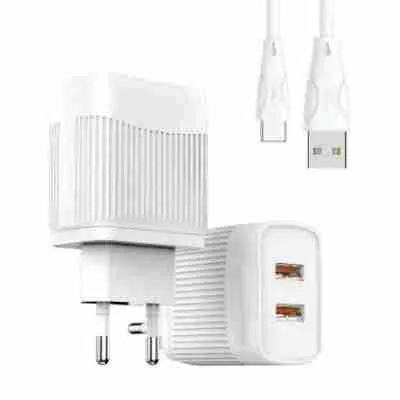 • 1 Carregador de Tomada bivolt 5.1A com 2 entradas USB com Cabo Padrão Tipo C usb 1.00CM comprimento
