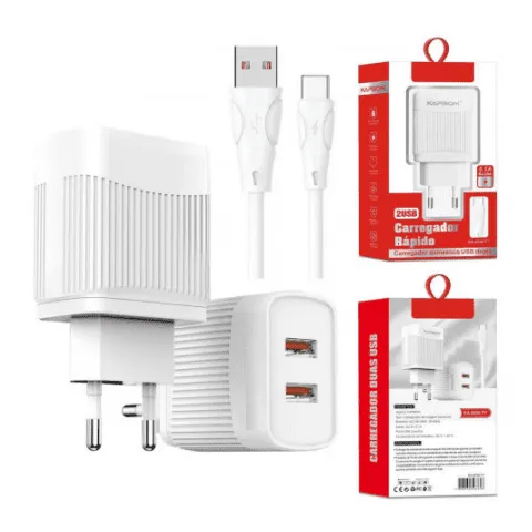 Possui um cabo Tipo C com 1 metro integrado, mais 2 saídas USB Fast Charger compatível com Smartphones, Tablets, MP4, PSP, Câmera, entre outros…