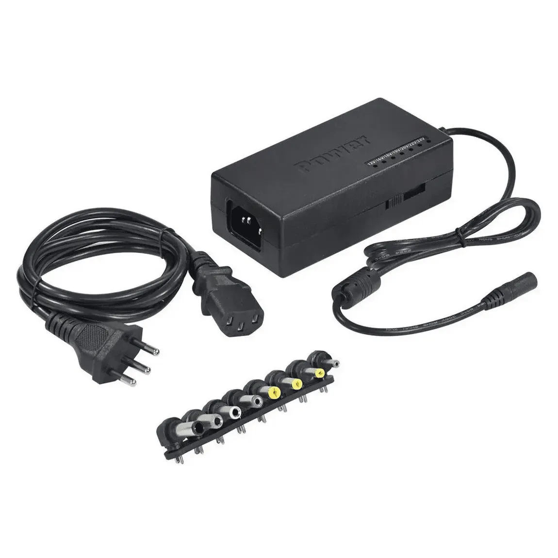 Este adaptador AC/DC de alta potência é fabricado para alimentar notebooks que requerem entrada DC de 12V a 24V. Além disso, ele acompanha 9 conectores que encaixam na maioria dos notebooks.