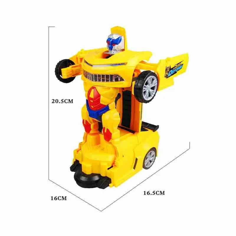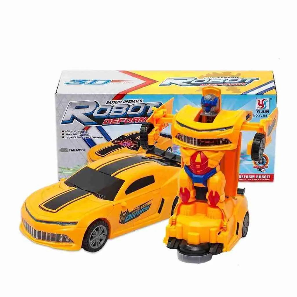 Carro a Pilha Vira Robô Emite Som e Luz Brinquedo Amarelo