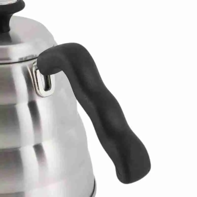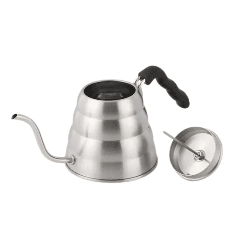 Material: A chaleira é feita de aço inoxidável, que é resistente à corrosão, durável e fácil de limpar. O material não interfere no sabor da água ou das bebidas.