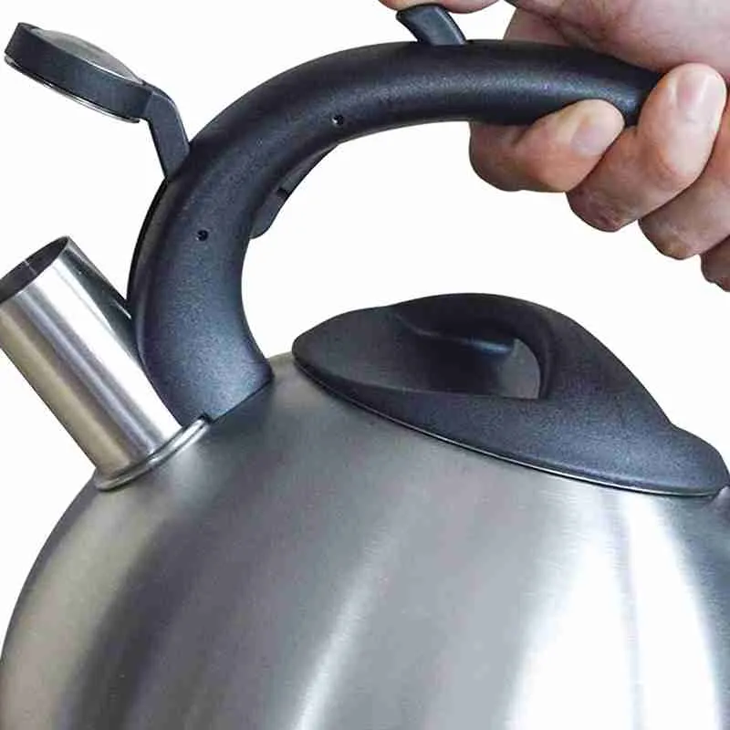 O dispositivo de apito do bico está equipado com um dispositivo de som automático para soar quando a água é ligada, para evitar que a água ferva excessivamente.