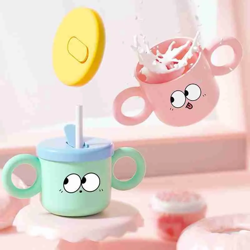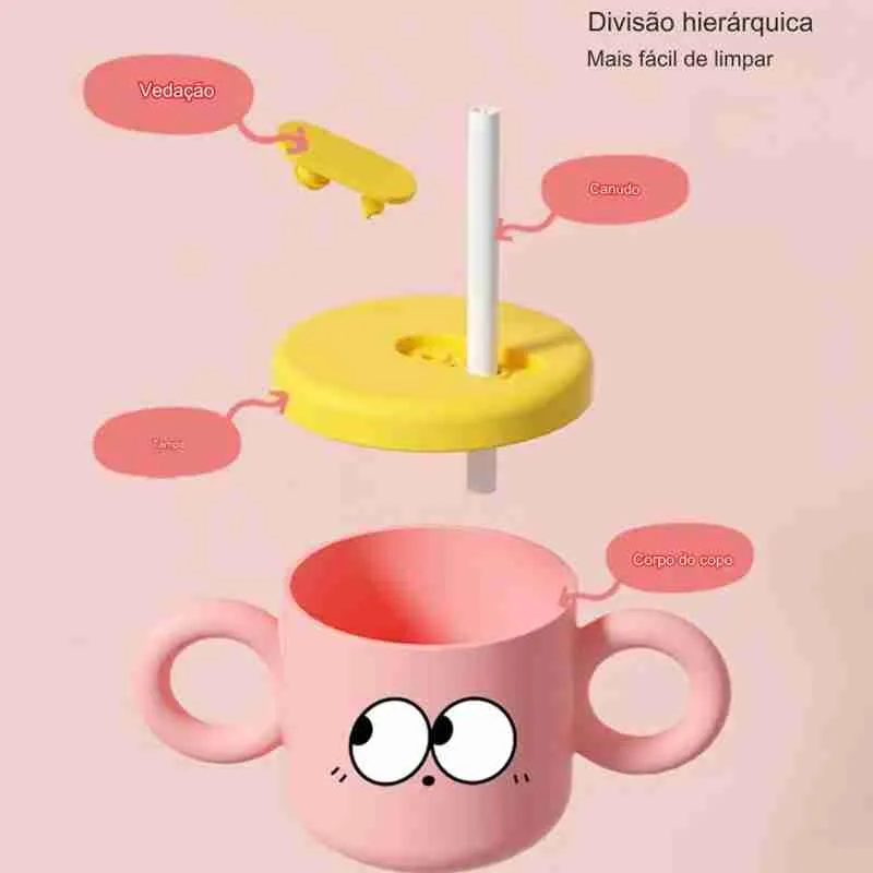 Copo Fofinho Infantil Com Tampa E Canudo Duas Abas 280ML