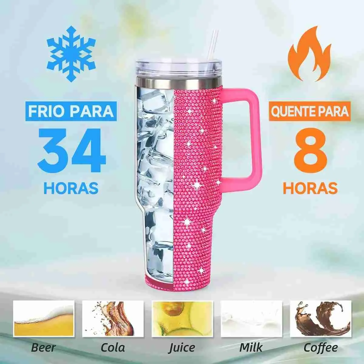 Copo Térmico com Strass Brilho 1200ml