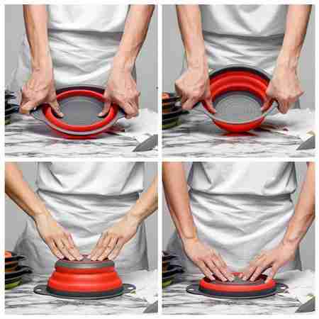 Depois de utilizá-lo basta fechar e armazenar onde desejar, em uma prateleira, gaveta, junto com as assadeiras, tampa de panelas, com as tabua de carne pois ele é dobrável e inteiramente flexível.