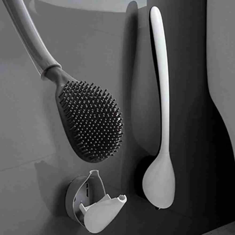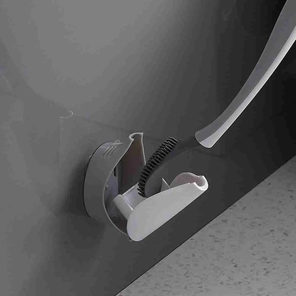 Escova sanitária de plástico macio com fixação de parede criativa com escova de limpeza de vaso sanitário de áste longa.