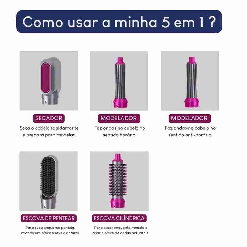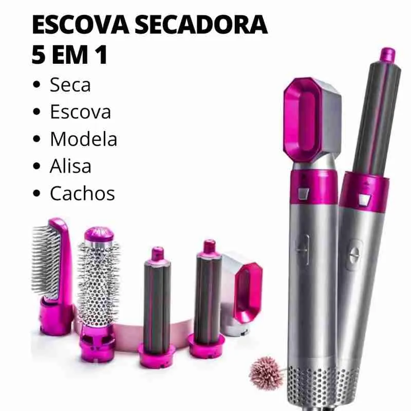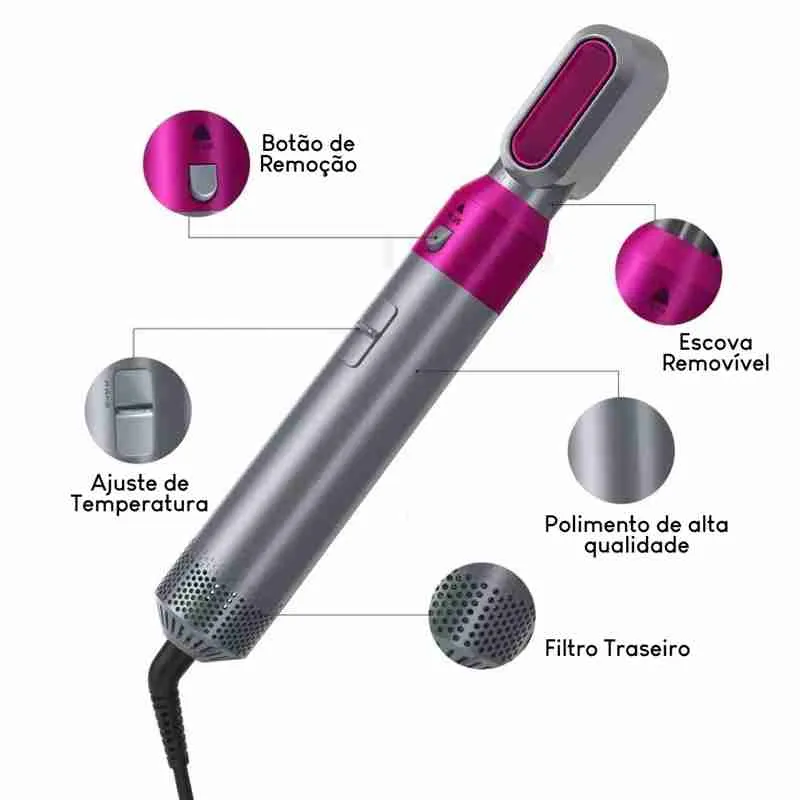 Secador Modelador Alisador Elétrico Ar Quente 5 Em 1