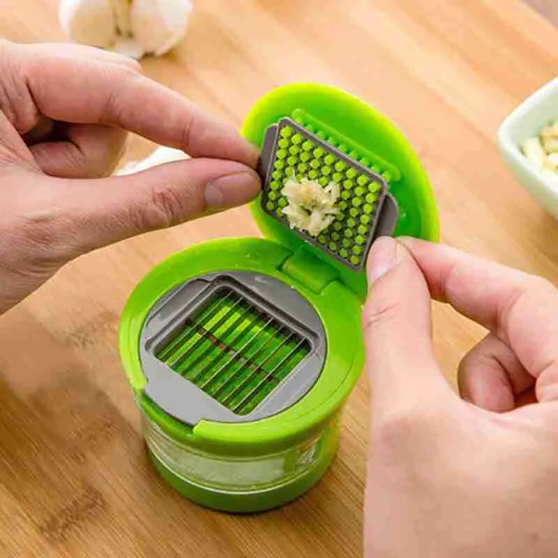 O produto é super prático. Basta colocar o alho na parte superior e fechar a tampa, que em poucos instantes o alho picado cairá no compartimento removível, pronto para ser utilizado no tempero de sua comida.