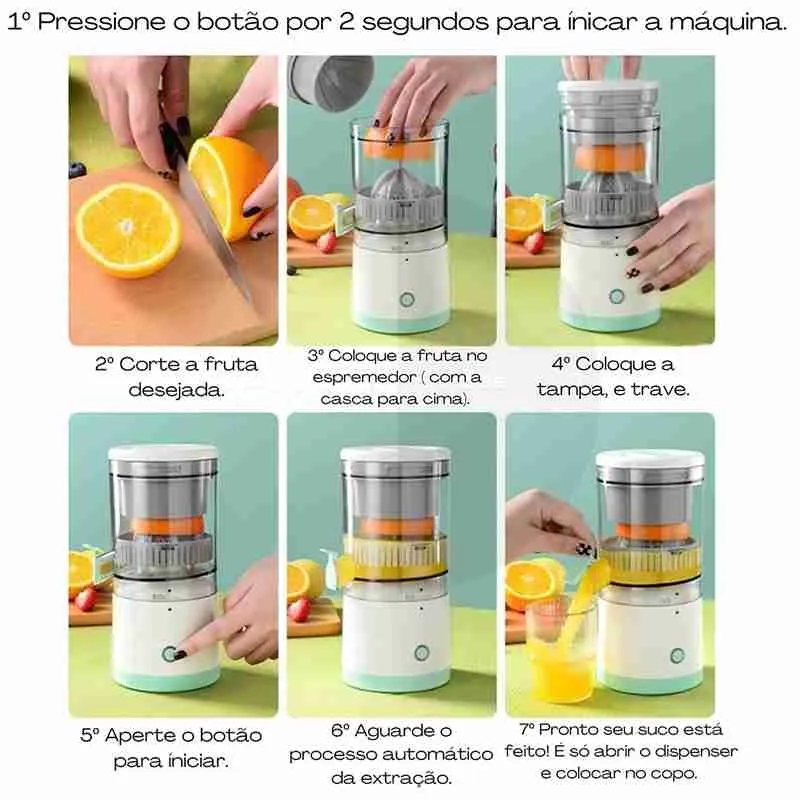O espremedor elétrico pode ser usado para laranjas, maçãs, romãs, peras e outras frutas, e ainda é compacto e fácil de transportar. Também adequado para fazer vitaminas, shakes de proteína, molhos de salada etc. pelo o seu formato portátil é ele pode ser levado para viagens, acampamento, pesca, carro, escritório, piquenique, etc.