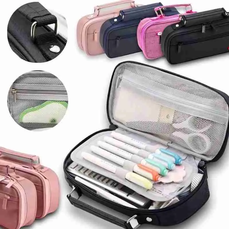 Estojo Liso Com 2 Divisórias e Alça Necessaire Escolar