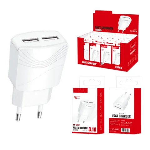 Fonte Carregador Celular 2 Entradas USB 3.1A Carregamento Rápido
