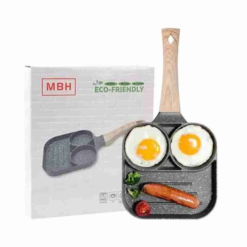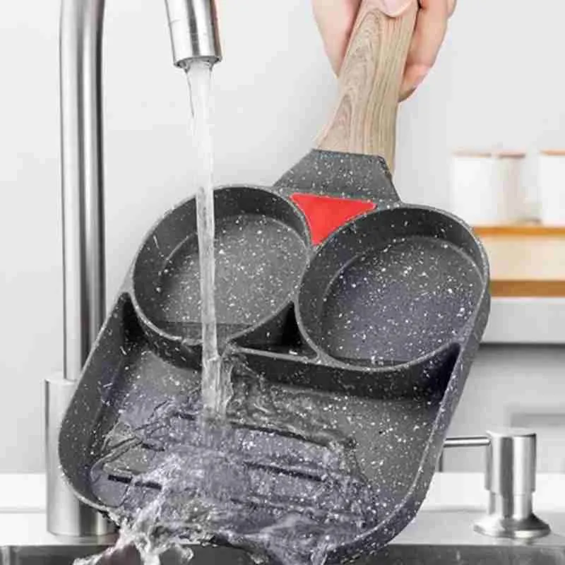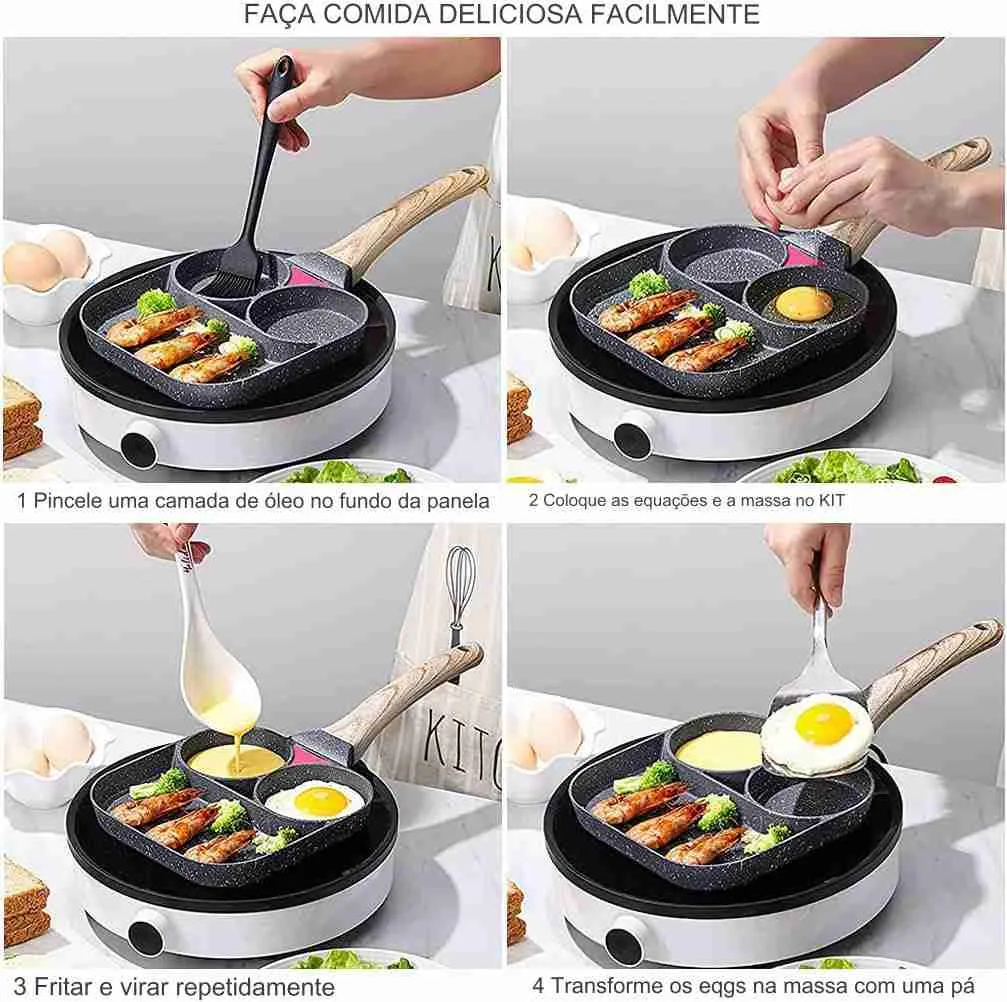 A frigideira apresenta um design inteligente com compartimentos ou seções separadas, permitindo que você cozinhe diferentes tipos de alimentos simultaneamente.