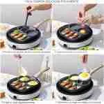 A Frigideira 3 em 1 é perfeita para cozinhar omeletes, hambúrgueres, bacon, panquecas e qualquer outra coisa que você quiser o que pode tornar o cozimento mais rápido e fácil.