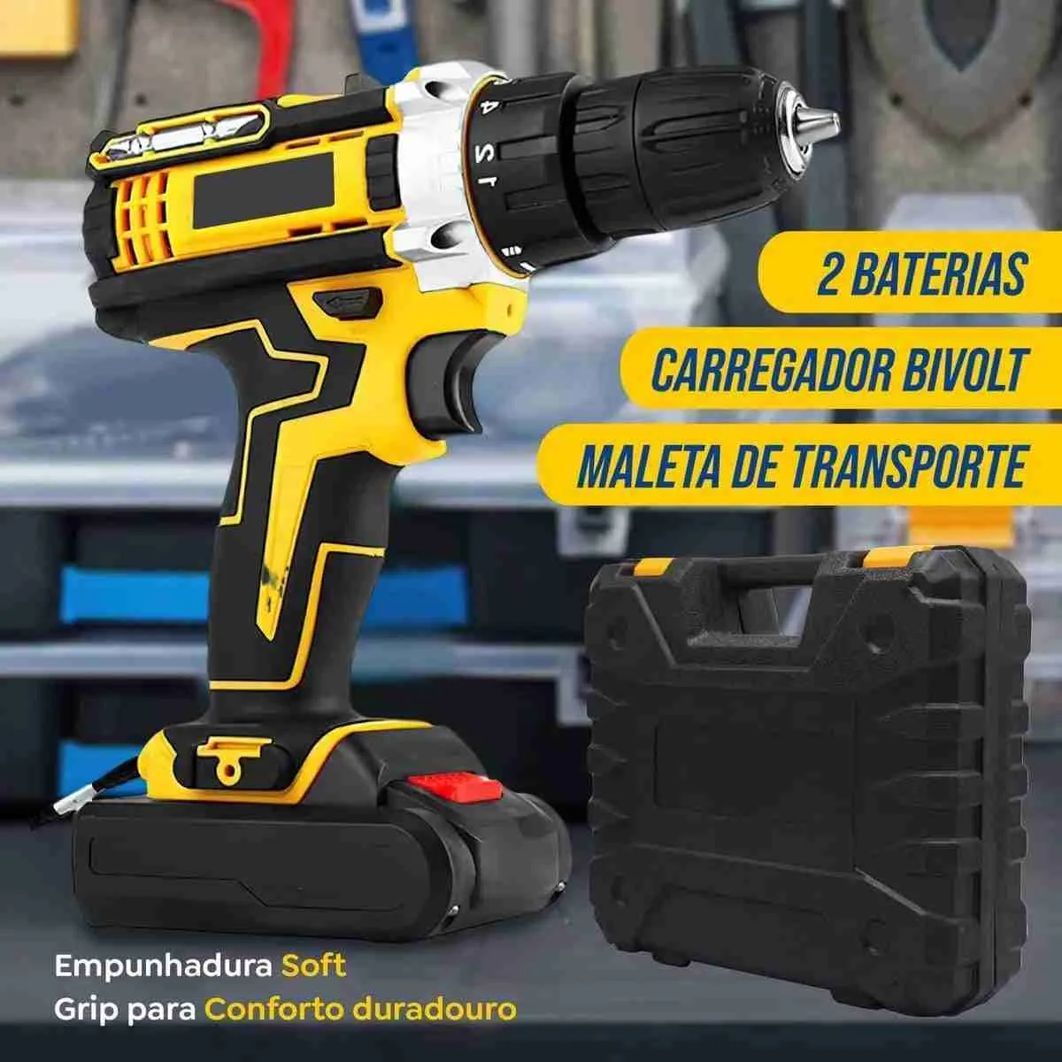 Furadeira Parafusadeira Impacto Com Maleta 2 Baterias 36V
