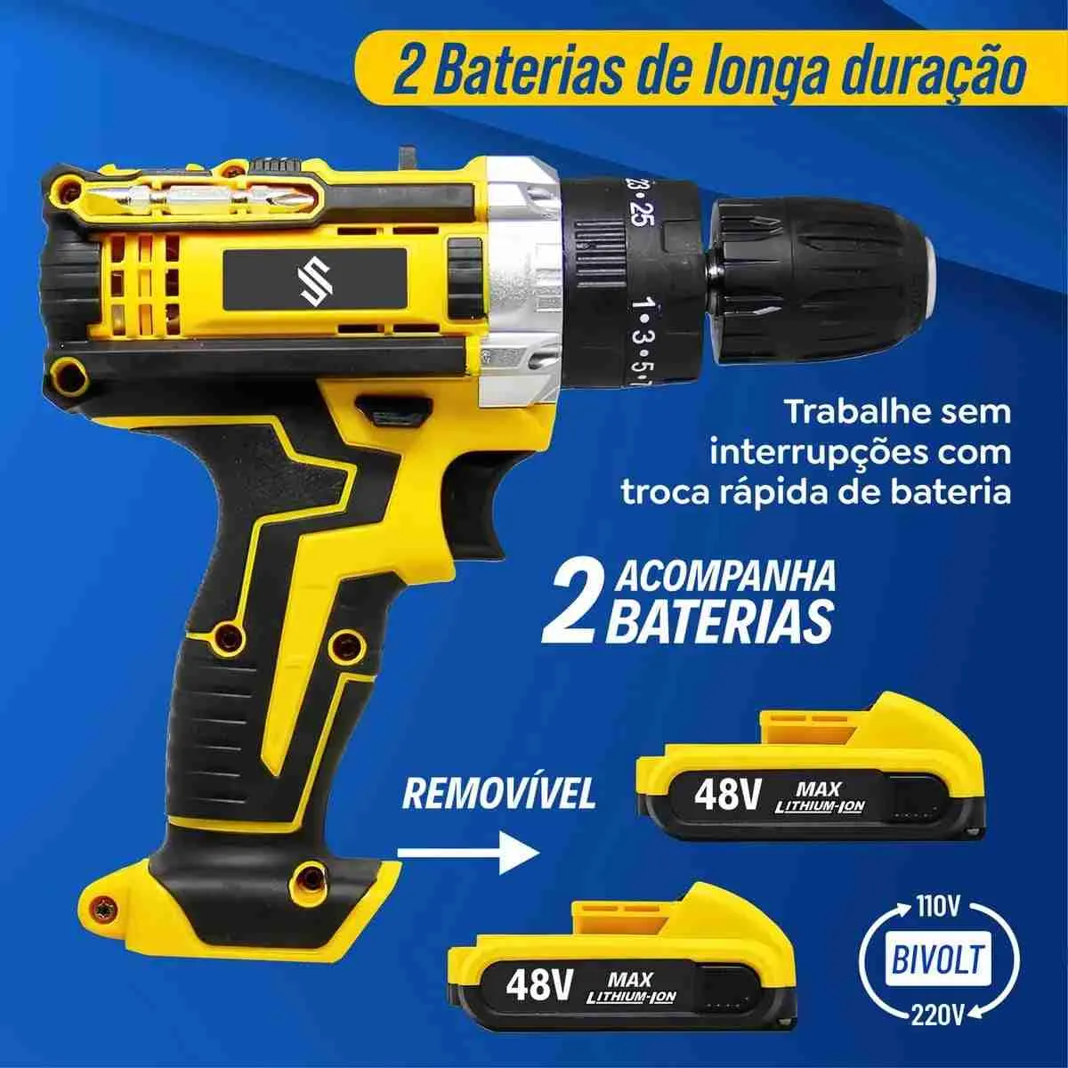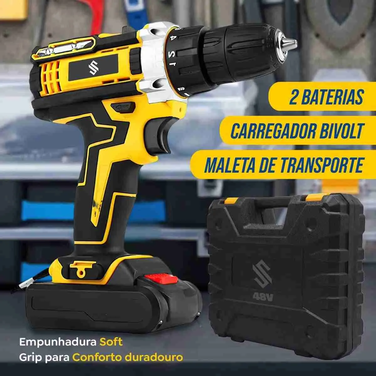 Furadeira Parafusadeira Impacto Com Maleta 2 Baterias 48V