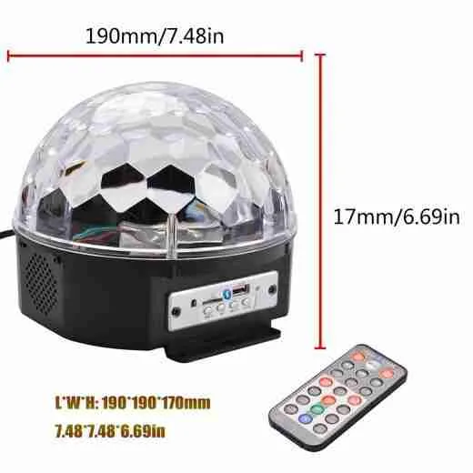 Globo Bola Maluca Led Magic Cristal Rgb Bluetooth Som MP3 Pen Drive