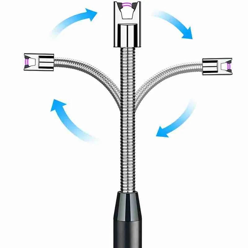 Isqueiro Acendedor Eletrônico e Arco Flexível com USB Recarregável Rotação 360 Graus em Aço Inoxidável.