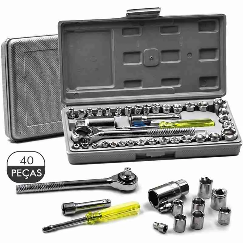 Jogo de Chaves Soquetes Sextavado Com Catraca 40 Pçs + Maleta
