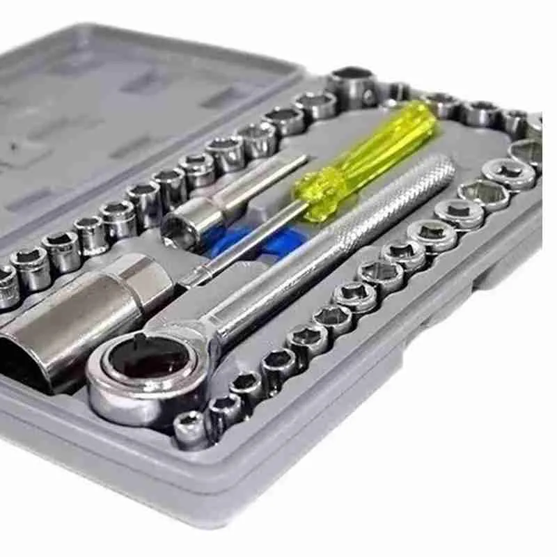 O Jogo de Chaves Soquetes Sextavado Com Catraca com 40 peças é uma ferramenta projetada para tornar o trabalho de aperto e soltura de porcas e parafusos muito mais rápido e leve. Produzida em aço especial e reforçado. São ferramentas que não pode faltar na sua caixa de ferramentas.