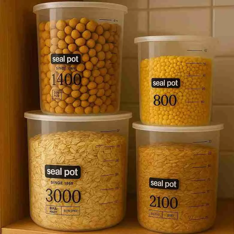 Uso Versátil: Ideal para armazenar grãos, cereais, biscoitos e refeições prontas. Perfeito para otimizar o espaço em armários e despensas.