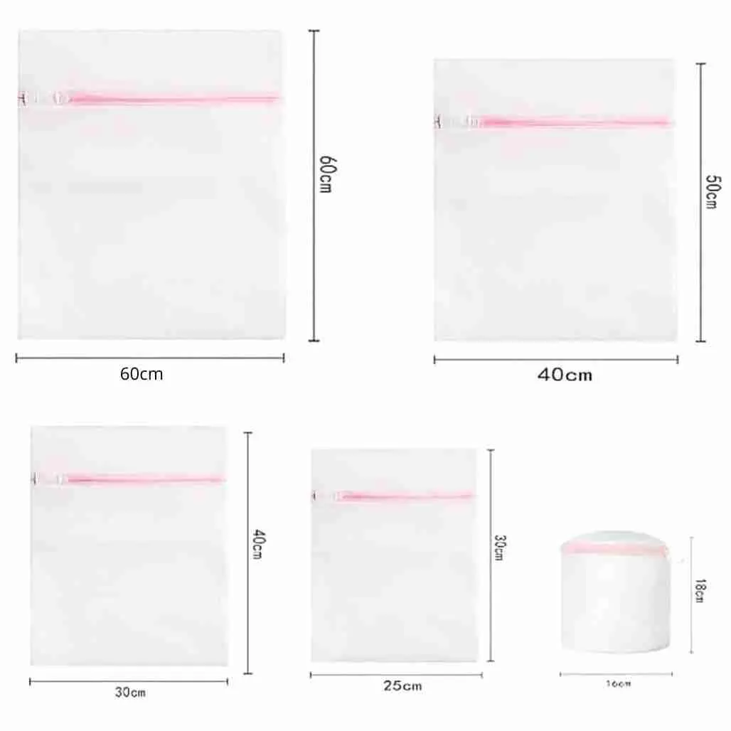Itens Inclusos no Kit: 5 sacos de lavar roupas em tamanhos variados.