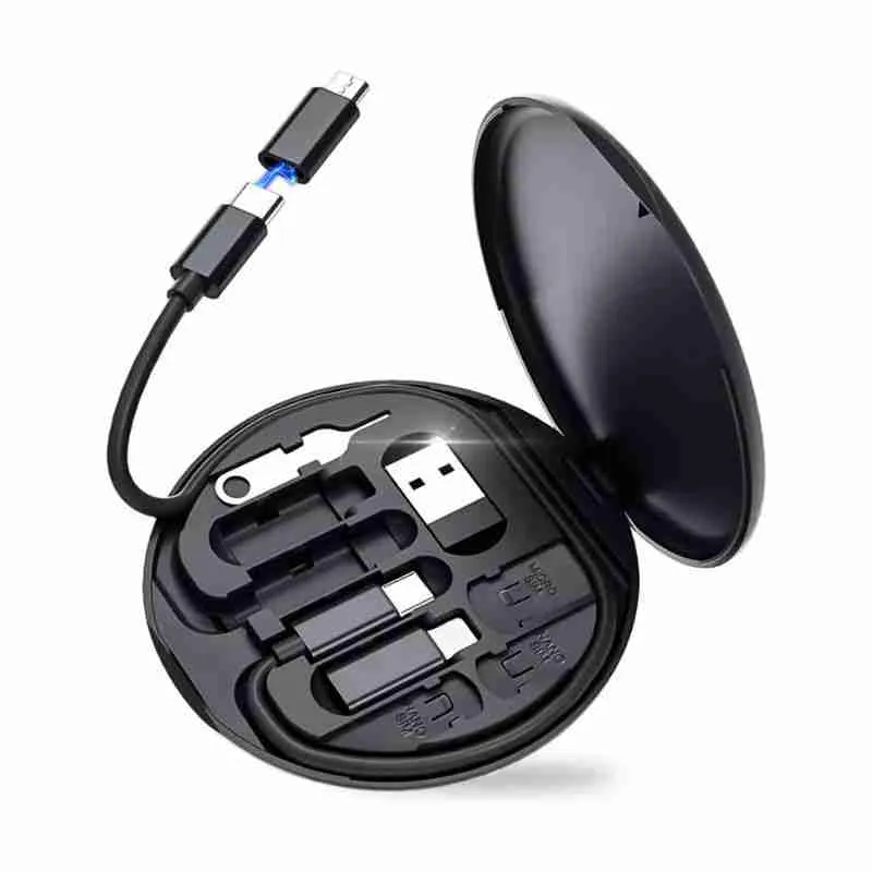 O Kit Adaptador De Carregamento USB 60W é ideal para viagens e eliminar a necessidade de múltiplos carregadores, este kit possui quatro portas intercambiáveis compatíveis com Android, Lightning, USB e Tipo C, permitindo carregamento e transferência de dados com praticidade.