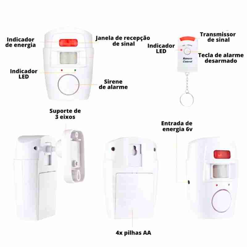Sirene: emite um som alto e potente para alertar sobre a presença de um intruso.
