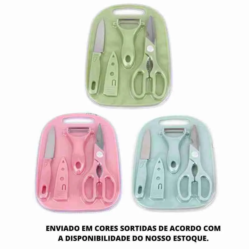 Tábua: Acompanhando o kit, a tábua é feita com material durável e de fácil limpeza. Ela oferece uma superfície de corte segura e higiênica, evitando contaminação cruzada entre os alimentos.