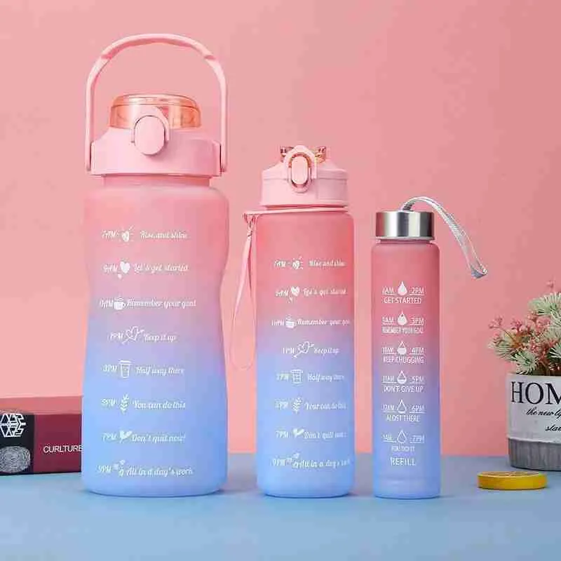 Kit Garrafa Motivacional Squeeze Colorida – 03 Peças