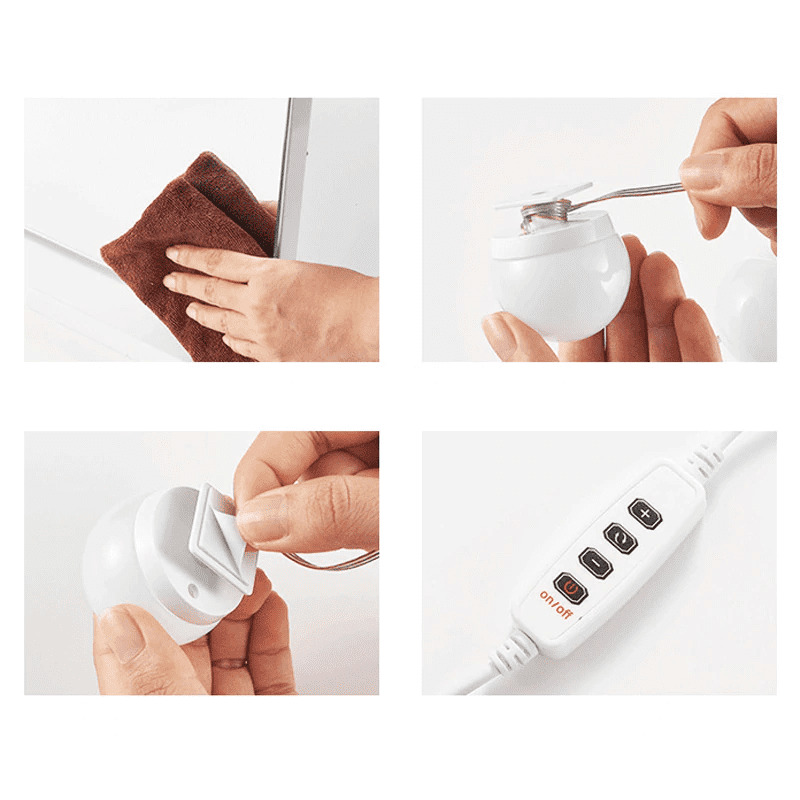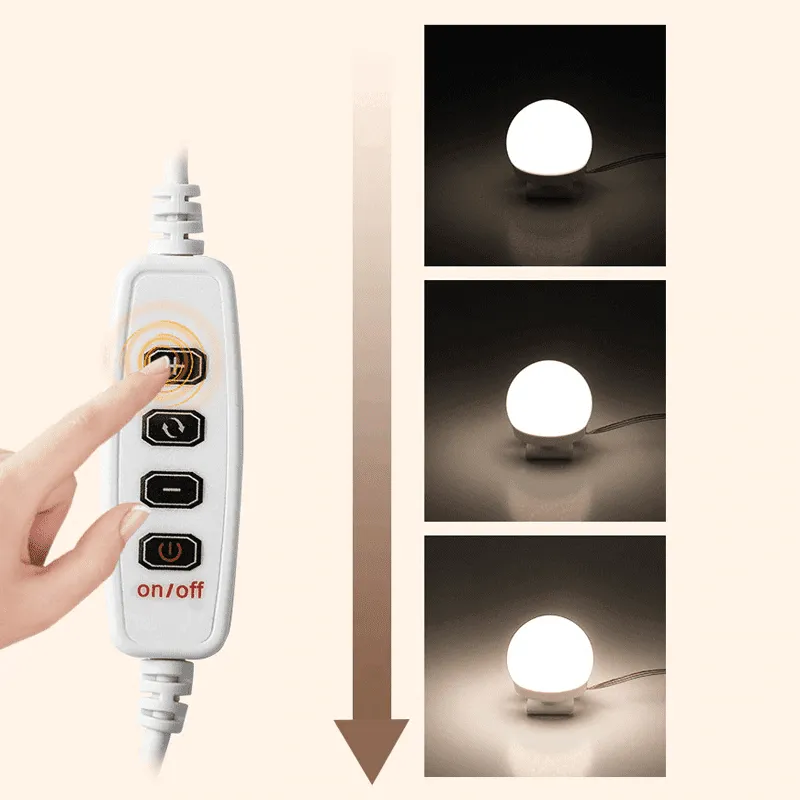 Luz suave e não ofuscante. A lâmpada LED proporciona uma iluminação profissional para maquiagem, é suave e não ofuscante, para que seus olhos não ser ferido pela luz