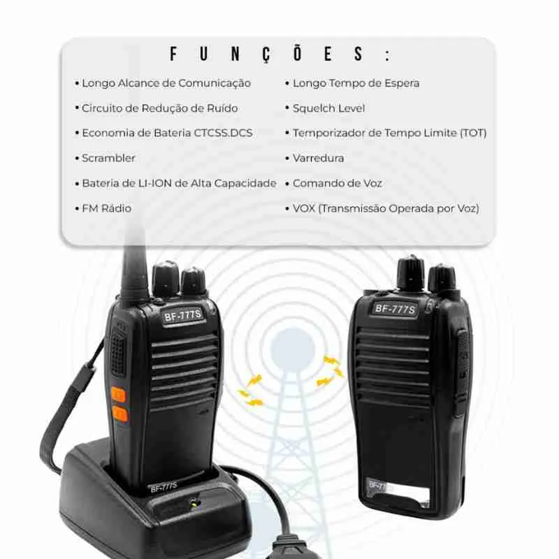 Design Compacto e Resistente: Feito para suportar o uso diário, o Baofeng 777s é robusto e durável, perfeito para situações adversas.