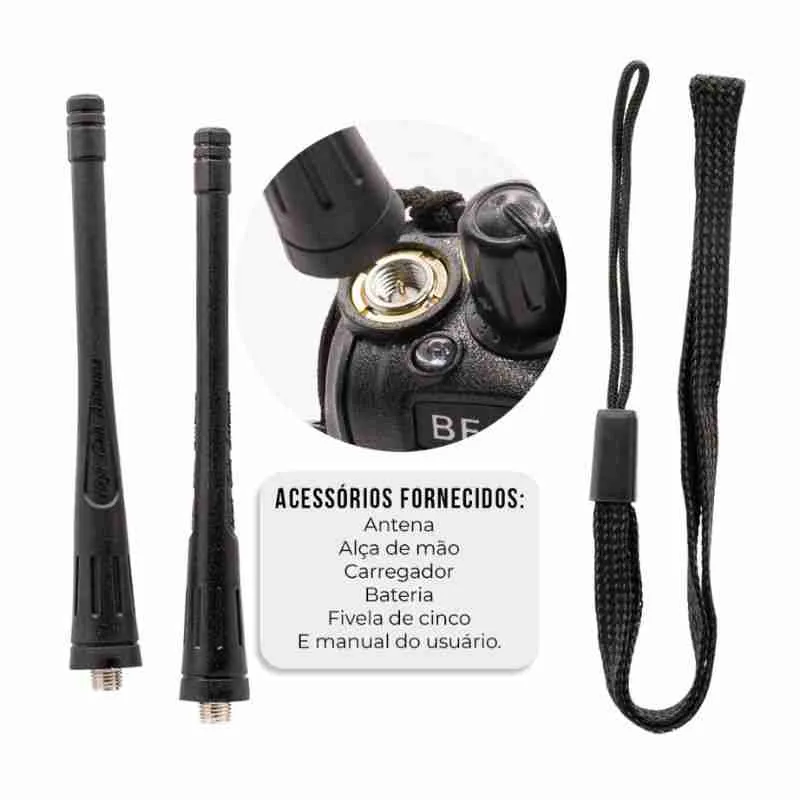 Alcance de Até 12 km: Ideal para uso em áreas abertas e amplas, como trilhas, eventos ao ar livre, atividades de segurança e trabalho em campo.