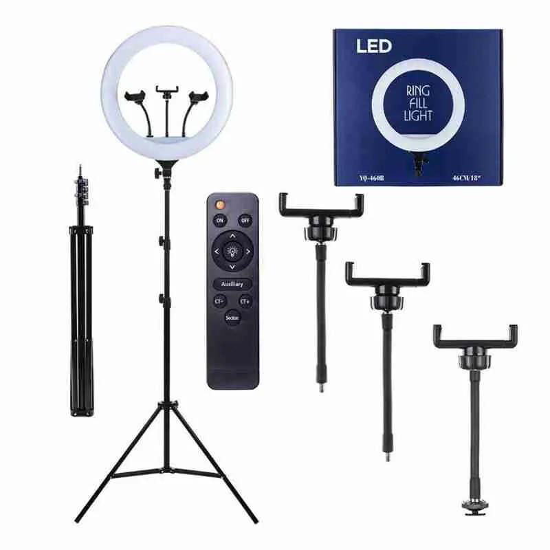 O Ring Fill Light YQ 460B de 18 Polegadas oferece iluminação de intensidade e desempenho profissional, com mudança de temperatura de cor instantânea de 3200k-5600k, e ao mesmo tempo um equipamento leve, durável e fácil utilização.