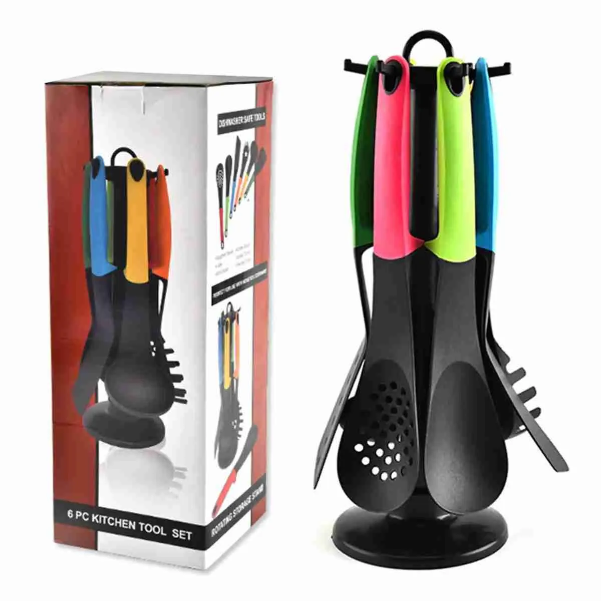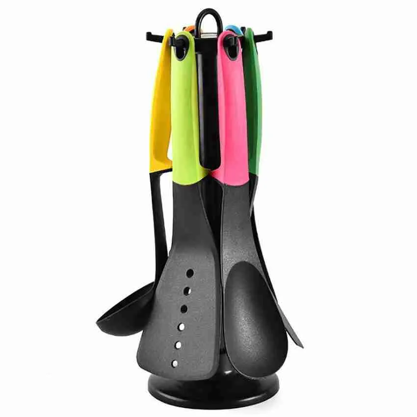 Composto por peças fabricadas em nylon e silicone e um prático suporte para deixar os utensílios organizados.