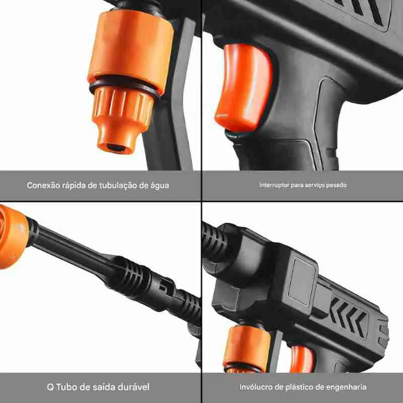Limpeza Eficiente: O motor potente transforma água em um jato ultra potente, ideal para limpar carros, calçadas, paredes, bicicletas, motos, cerâmicas e muito mais.
