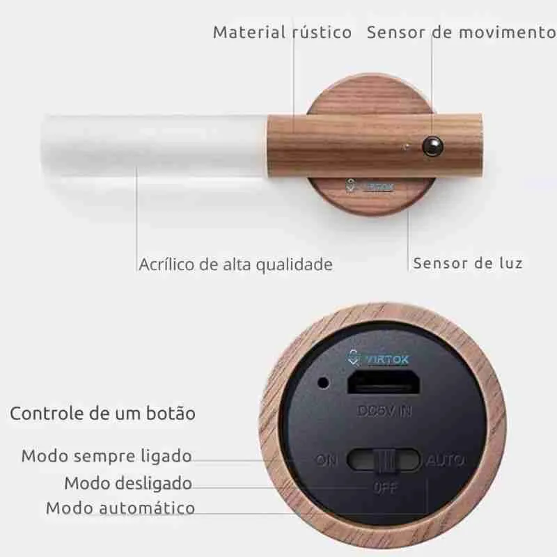 Luminária Bastão Luz LED Recarregável Sensor Movimento