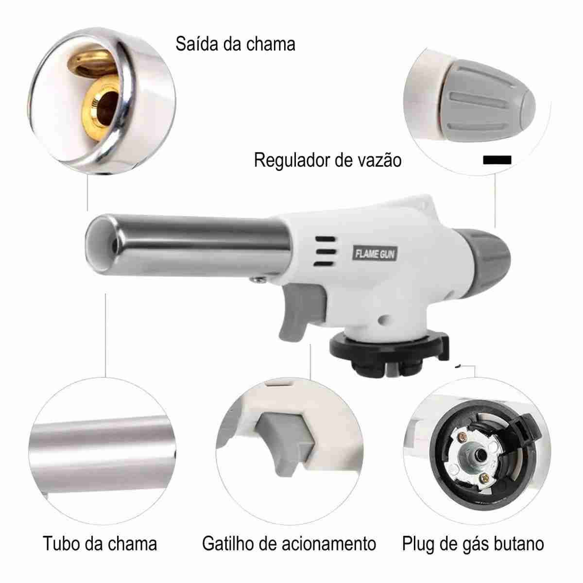 O equipamento lança uma pequena chama e é ideal para flambar, dourar, gratinar e até descongelar! Tudo isso com muita praticidade pois este modelo possui um dispositivo de acendimento em um clique apenas com uma faísca. Basta apertar e usar! A regulagem da chama permite que o maçarico seja utilizado para diversas finalidades e variados pratos.